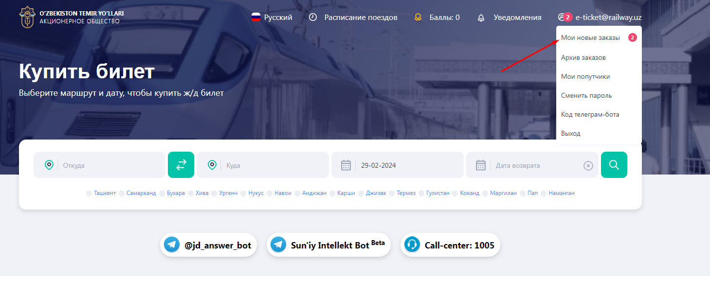 2) Siz temir yo'l chiptaxonalaridan chiptani qaytarishingiz mumkin.
